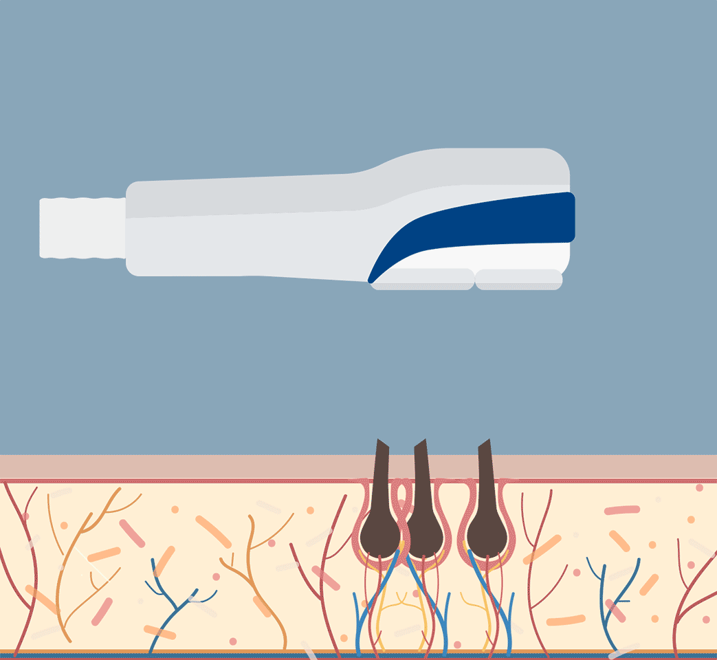Длина волны лазера 715нм воздействуют не только на волосяной фолликул, но и на сосудистый пучок, питающий волос.